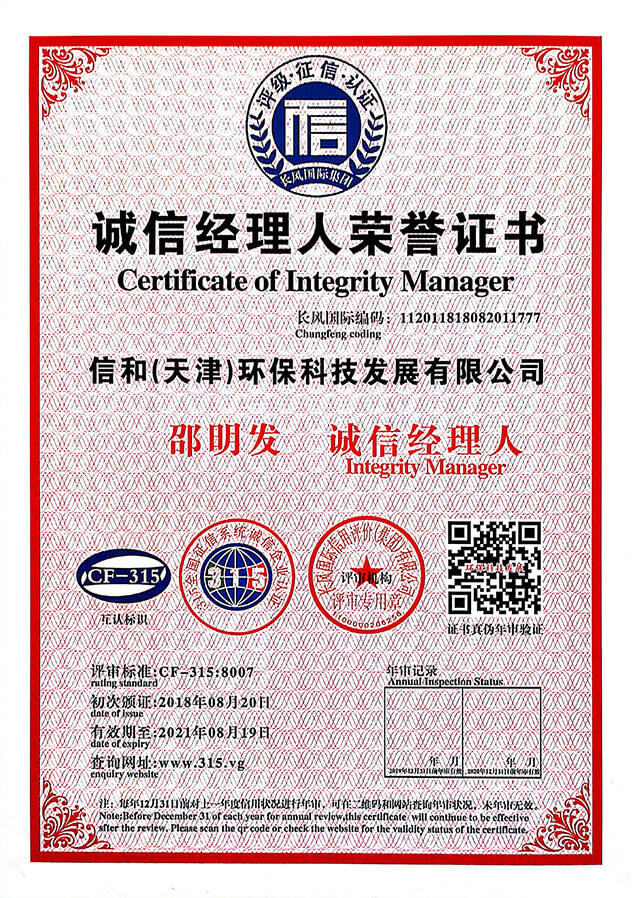 信和(天津)環??萍及l展有限公司是一家專業從事環保設備研發的生產型企業,坐落于天津市武清開發區,注冊資金2000萬元,擁有≤中華人民共和國進出口企業資格證≥和≤安全生產許可證≥。公司為《中國環保產業協會會員單位》《中國城市環境衛生協會會員單位》《中國節能協會會員單位》。企業現有員工168人,其中高級職稱技術人員65名、1個技術研發中心和4個生產車間,擁有國際先進的板材加工中心、激光切割機、數控沖剪機、等離子切割機等下料成型設備。
